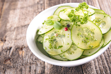 오이는 샐러드의 인기 있는 재료입니다. 오이를 자르거나 썰어 그린 샐러드, 파스타 샐러드 또는 곡물 샐러드에 추가하여 아삭함과 신선함을 더할 수 있습니다. 토마토, 양파, 페타 치즈, 허브와 같은 재료와 잘 어울립니다.